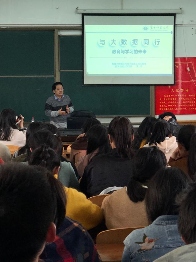 本网讯(见习记者 周程晨)11月8日下午,华中师范大学数学与统计学学院教授、博导、教育大数据应用技术国家实验室核心成员李波做客我校,在10号教学楼10202会议室作题为“与大数据同行——教育与学习的未来”的讲座。
