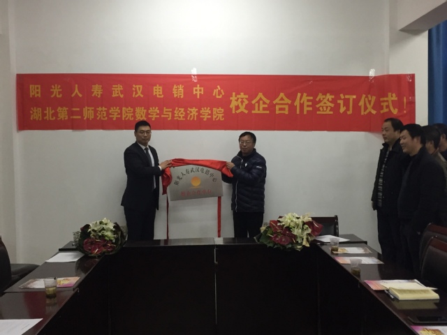 (通讯员 刘程)为深化产教融合、校企合作,探索校企合作的长效机制,12月20日,数学与经济学院举办校企合作签约、授牌仪式。出席此次授牌仪式的嘉宾有阳光人寿武汉电销中心副总经理李永杰、人力发展部经理王益君、事业部总监杨影等企业代表,数学与经济学院党总支副书记汪平、副院长李海雄、经济系主任彭亮、金融数学系主任宋志秀共同参加。此次仪式由党总支书记刘原主持。