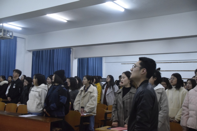 学生会主席助理、2017级应用统计学专业学生曹星星宣读《共青团湖北第二师范学院委员会文件》——关于开展3月份“支部主题团日”活动的通知。一要持续广泛组织开展“青年大学习”网上主题团课活动;二要通过多种渠道,密切关注“两会”动态,深入学习贯彻“两会”精神。