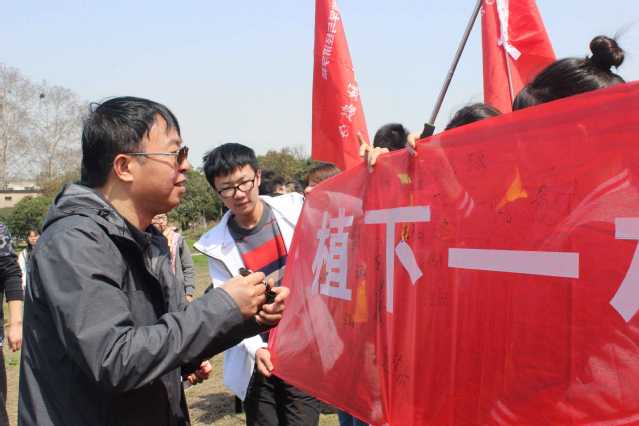 为了美化我们的生活环境,保护我们赖以生存的大自然,3月12日中午,校领导、职能部门领导与数经学院师生一起在校三鉴池旁边开展了一年一度的植树节活动。