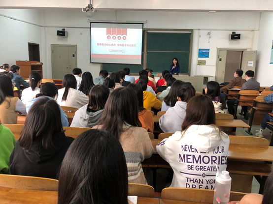 11月18日下午3点,数学与经济学院邀请了武汉市卓刀泉中学教学副校长梁川红为学生讲授《聚焦数学核心素养、修炼基本专业能力》。此次讲座在10号教学楼10408举行,数学与经济学院副院长李海雄主持,数学系主任丁道新、部分青年教师代表应邀参加,2018级数学与应用数学专业学生参会。