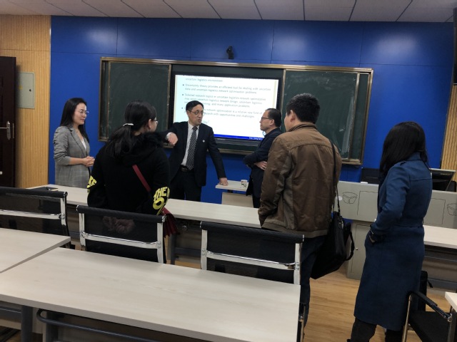 彭锦教授结合物流运输背景,侧重介绍了带有不确定数据的网络优化建模方法。首先,说明什么是不确定物流网络,然后,解释为什么需要研究不确定物流网络,之后阐述怎样进行不确定物流网络优化建模及应用。彭教授博大深厚的数学理论知识、幽默大气的谈吐和敏锐精准的见解,给参加报告会的师生留下了非常深刻的印象,报告会上不时响起热烈的掌声。高层次的学术报告使师生增强了对科学研究的认知、认识和热爱,更激发了对学术研究的兴趣。