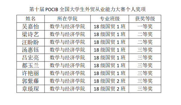 本网讯(通讯员 彭亮)近日,第十届POCIB全国大学生外贸从业能力大赛圆满结束。我校斩获团体一等奖、二等奖各1项;个人一等奖1项、二等奖2项,三等奖6项。