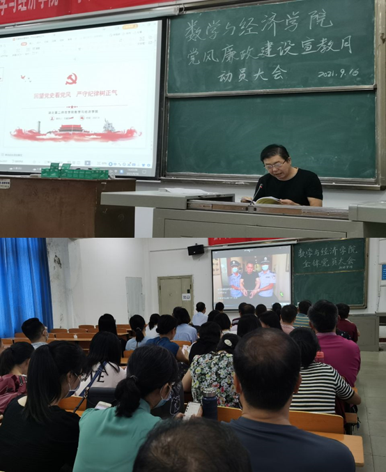 (通讯员 王聪)9月16日下午,数学与经济学院(以下简称“数经院”)在10号教学楼10108教室启动党风廉政建设宣传教育月活动,数经院分党委书记石嘉志讲廉政党课,活动由学院院长肖海燕主持。