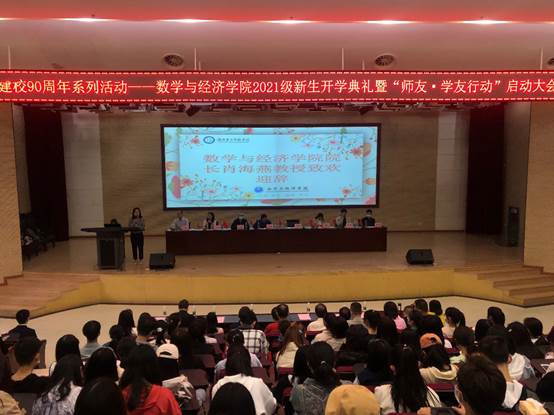 (通讯员 王聪)10月7日下午,数学与经济学院2021级新生开学典礼暨“师友·学友行动”启动大会在学校新图书馆2号报告厅举行。数学与经济学院分党委书记石嘉志、院长肖海燕,质量评估处处长李立亚、副处长殷仲海,教务处副处长邓樱花出席,学院分党委副书记严国涛主持会议。