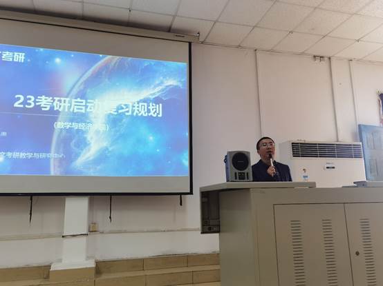 本网讯(通讯员 高英杰)10月21日中午,数学与经济学院(以下简称“数经院”)在旧图书馆3号报告厅举行了2023届毕业生考研培训工作。特邀万学教育海文考研湖北分校校长谭晓禹作考研复习规划。