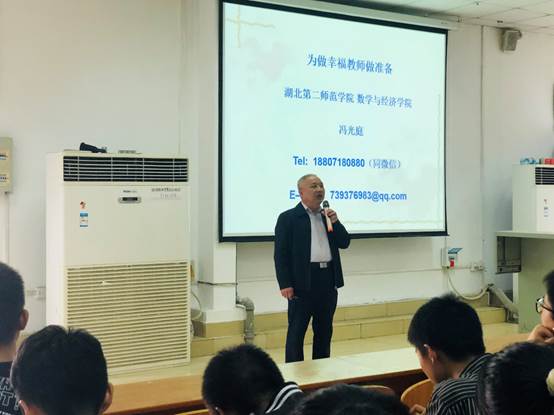 (通讯员 王聪)10月28日下午,数学与经济学院在老图书馆四号报告厅举办“优师计划”学术讲座,特邀请冯光庭教授为师范生讲授专题为——“为做幸福教师做准备”的学术讲座。