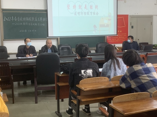 本网讯(通讯员 向丹)2022年3月28日至3月30日,“师友·学友行动”联系部门到数学与经济学院开展2022年春季疫情防控教育主题班会活动。参加主题班会的有教务处处长田恒平、副处长邓樱花、肖龙胜、吴馨,质量评估处处长李立亚、副处长殷仲海。