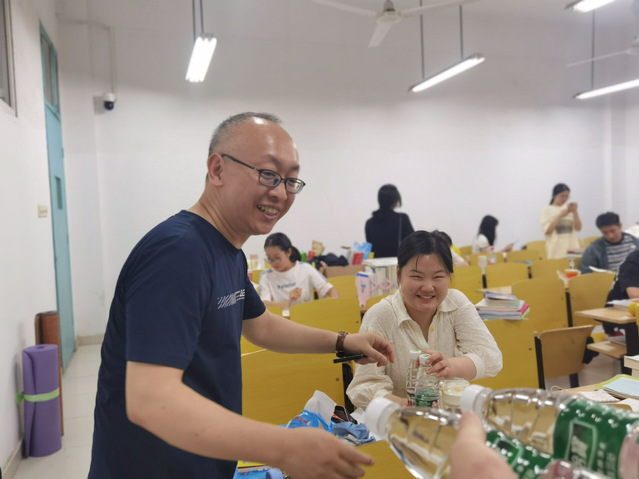 在本次活动中,数经院部分领导来到考研自习室看望考研学子,并送来慰问物资。他们不仅与考研学子积极交流互动,为他们讲解学习方法,还为他们送去解暑的饮品和食物,为他们加油鼓劲。领导们表示,希望所有考研学子能克服一切困难、稳扎稳打、放松心态,不断地积累经验教训,争取在考试中取得优异成绩。在场的所有学子对领导们的到来表示热烈的欢迎,对他们送来的物品也表示衷心感谢。不少学子表示,领导们的此次探访极大地缓解了他们紧张焦虑的情绪,让他们感到十分温暖。