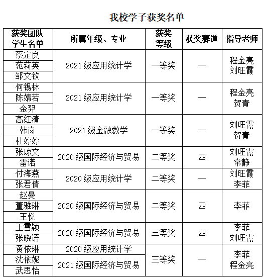 本网讯(通讯员 刘旺霞)9月14日,2022年(第五届)全国高校经济决策虚仿实验大赛圆满结束。我校获一等奖3项,二等奖3项,三等奖2项。