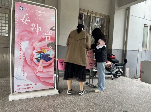 本网讯(通讯员 梅蕾)为引领女性正确看待和审视自己,进一步丰富女生精神文化生活,构建更和谐的校园环境。3月7日8时至18时,数学与统计学院于中十宿舍楼下举办“女神节”活动。