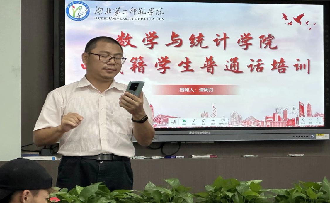 活动伊始,谭周舟进行了简单的自我介绍,并分享了自己在普通话方面的成就及经验,他希望此次培训能增强同学们学好普通话的自信心,让每个人都能熟练掌握普通话。紧接着,谭周舟强调了此次培训对参加普通话考试的同学的重要性。接着,谭周舟与同学们进行了互动小游戏,同学们在轻松的氛围下感受到了普通话的魅力。最后,同学们表示,此次培训让他们感受到院校及国家对他们的关爱,激励他们在学习普通话的道路上不断向前。