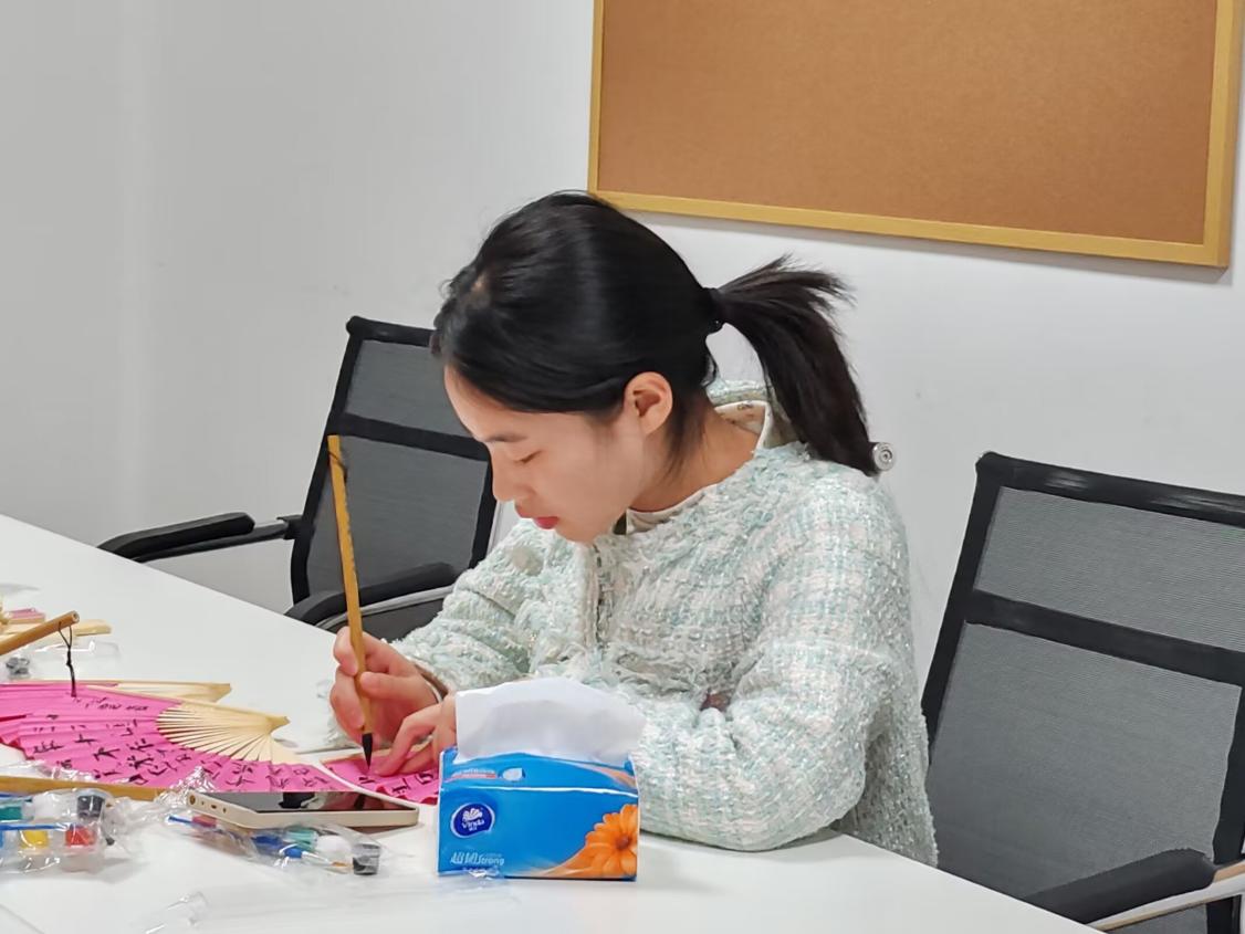 本网讯(通讯员 姚颖)为进一步优化“一站式”学生社区综合管理模式,发挥学生社区育人功能,营造育人文化,促进学生德智体美劳全面发展,11月23日16时,数学与统计学院在中区十栋学生宿舍“一站式”学生社区举行读书文化节系列活动一之“书扇合璧,翰墨情缘”扇面书法活动。本次活动由数学与统计学院学术部副部长赵思宇、曾诗组织。2022级、2023级各班参赛选手参与本次活动。