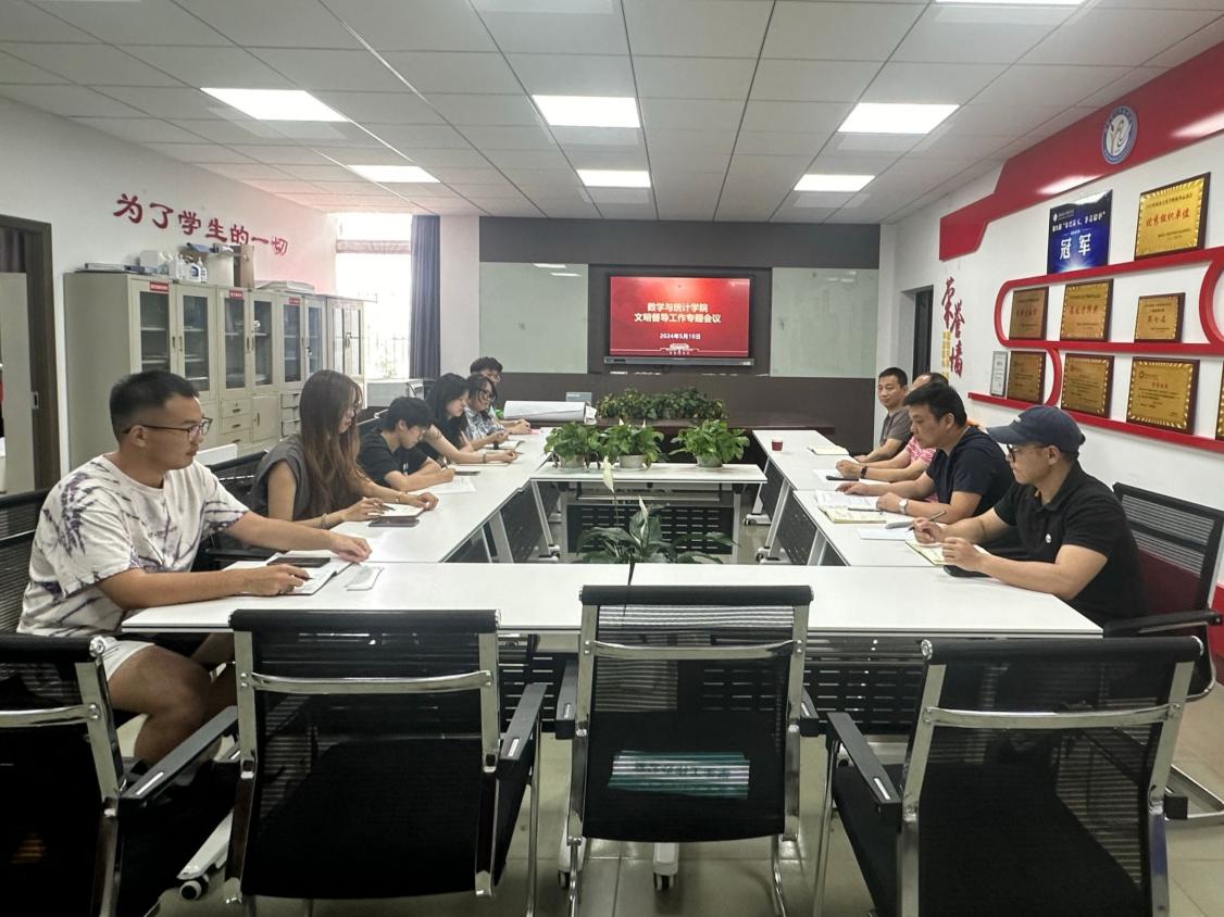 本网讯(通讯员 姚颖)5月10日12时10分,数学与统计学院在十号楼办公室召开文明督导工作专题会议。数学与统计学院党委副书记严国涛,学工办主任余江涛,团委副书记王聪,辅导员施凡以及主席团全体成员参与本次会议。