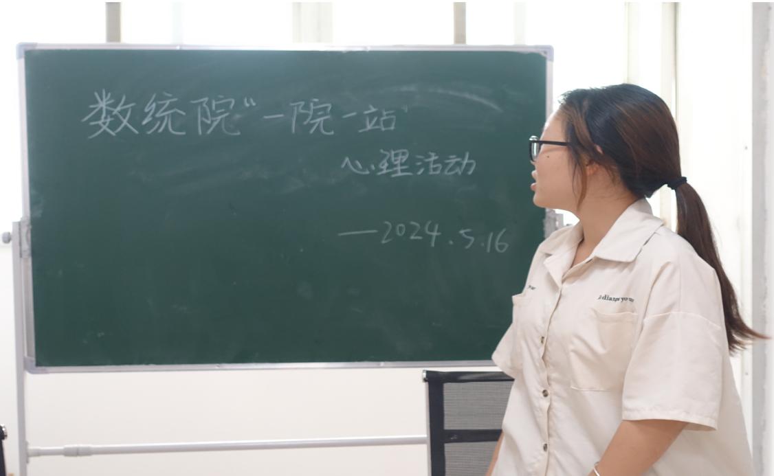 本网讯(通讯员 徐佳璟)为了让同学们在轻松愉快的氛围中感受数学的魅力,培养同学们的创新思维,丰富同学们的课余生活,提高同学们的心理素质,增强同学们面对挑战的信心,数学与统计学院于5月16日14时在中区十栋“一站式”学生社区举办以数学元素为主题的“一站一院”心理活动。