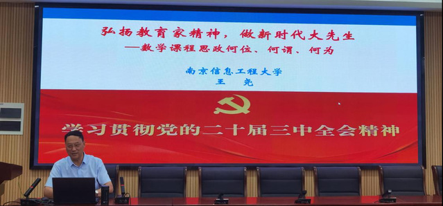 本网讯(通讯员 秦媛媛)9月12日下午,数学与统计学院邀请南京信息工程大学王尧教授在学院报告厅作题为“弘扬教育家精神,做时代大先生——数学课程思政何位、何谓、何为”的专题报告,学院全体教职工和优师班学生代表参加此次报告会。