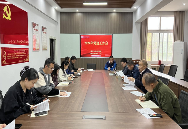 (通讯员王聪)10月21日下午,数学与统计学院在研究中心召开2024年党建工作会,学院领导班子、各科室主管及各支部书记参加。会议由党委书记林志红主持。 会上,林志红传达了学校组织部、统战部2024年党建工作会议精神,并就相关党建工作作出部署。