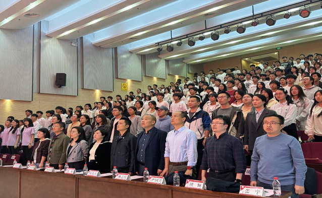 会议伊始,全体起立,奏唱国歌。随后,桂嘉嘉介绍参加本次会议的领导。接着,各位领导依次为新生班级班主任、新生班级辅导员助理颁发聘书,并为新生班级授予班旗。
