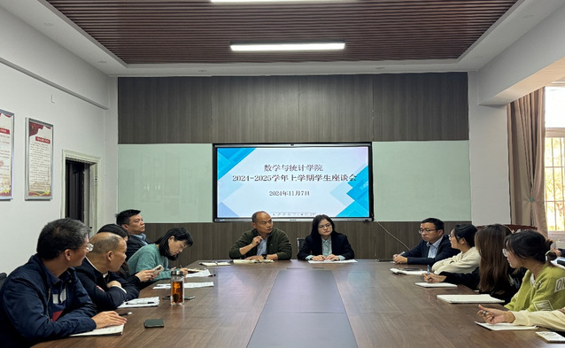 本网讯(通讯员 杨佩)为深入了解学生的学习情况和需求,11月7日,数学与统计学院在十号楼二楼研究中心组织开展2024-2025上学期学生座谈会。数学与统计学院党委书记林志红,党委副书记严国涛,副院长吴新林,院长助理张宇,系主任、教学督导、教学办、学工办老师,以及2022、2023、2024级各班学委参加本次座谈会。