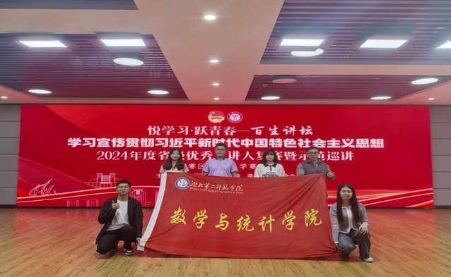 本网讯(通讯员 张雪)11月14日,党的二十届三中全会精神“悦学习·跃青春”青年宣讲团示范宣讲暨2024年“百生讲坛”颁奖仪式在S4210举行。2023级数学与应用数学3班谭周舟荣获2024年度“悦学习·跃青春——百生讲坛”省级银牌主讲人称号。