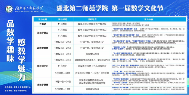本网讯(通讯员 方瑞昕)为提高学生的数学思维能力,激发学生对数学的探索欲与创造力,11月29日下午,数学与统计学院在行知广场开展第一届“数学文化节”系列活动。
