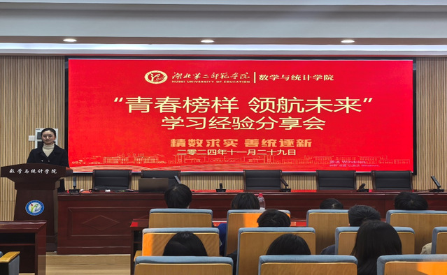 本网讯(通讯员 杨咏欣)为发挥优秀学生的榜样力量,助力同学们更为高效地投入专业学习,11月29日,数学与统计学院于学院报告厅开展“青春榜样 领航未来”学习经验分享会,数学与统计学院2022、2023级数据计算及应用专业学生参与此次分享会。主讲人是2023-2024学年国家奖学金获得者2023级数据计算及应用1班赵雪琪。