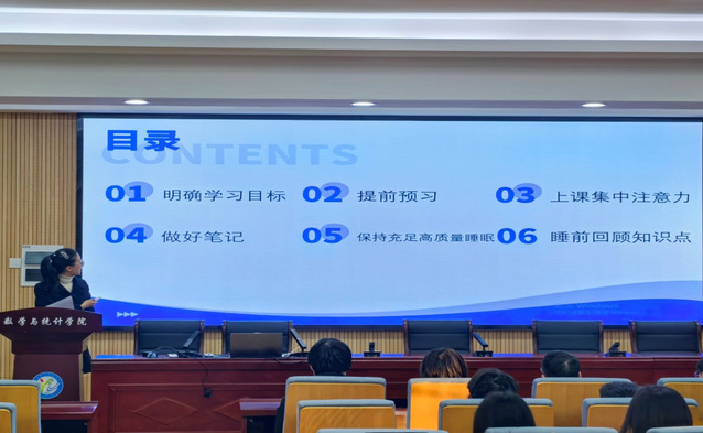 分享会中,赵雪琪分别从明确学习目标、提前预习、上课集中注意力、做好笔记、保证充足高质量的睡眠和睡前回顾知识点六个方面,向同学们分享了自己的学习心得。此外,她结合自身经历,就同学们日常学习与生活中的实际情况,提出具有针对性的建议,并强调了合理规划与劳逸结合的重要性。