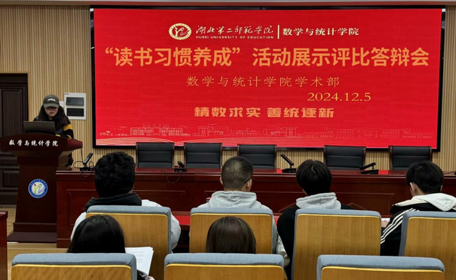 本网讯(通讯员 张雪)为了积极推进“学在二师”优良学风建设,对各班“读书习惯养成”活动进行最后的总结与评定,12月5号下午,数学与统计学院在十号楼二楼会议室开展“读书习惯养成”活动展示评比答辩会。数学与统计学院团委学生副书记肖述洋,主席团成员傅国华,学术部副部长刘睿晨,2024级各班负责人参与本次活动。2024级数学与应用数学3班余汶婧主持本次活动。