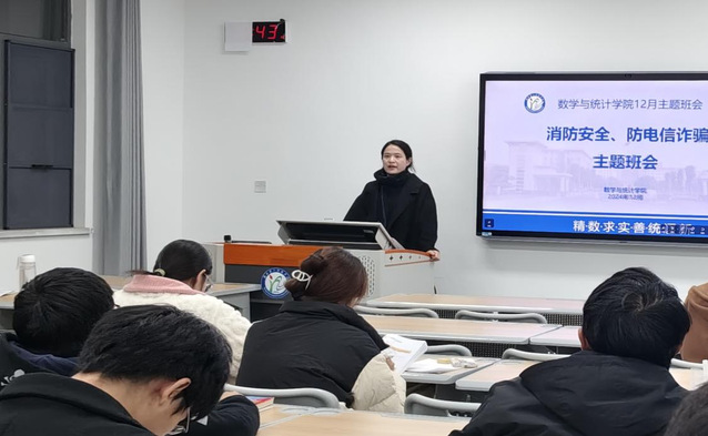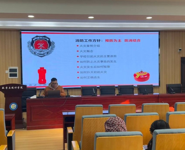 本网讯(通讯员 黄仔怡)为了增强学生的消防安全意识,提升学生应对火灾的综合能力,12月初,数学与统计学院各班级组织开展消防安全主题班会。在主题班会上,各班辅导员指出了学校以及宿舍中存在的火灾隐患,提醒同学们要以预防为主、防消结合。同时,辅导员们还细致地传授火灾发生时的逃生技巧,并现场展示了灭火器模型,让同学们有了更直观的认识。本次消防安全主题班会,不仅丰富了同学们的消防安全知识,更在同学们心中种下了消防安全的种子,做到防患于未然。