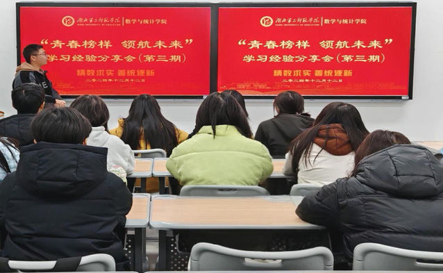 本网讯(通讯员 何兴瑶)为帮助2024级新生更好地规划学习生涯,充分发挥榜样的示范引领作用,12月12日,数学与统计学院于博雅楼515开展“青春榜样,领航未来”学习经验分享会(第三期)。数学与统计学院2024级数学与应用数学专业学生参加此次会议。主讲人是2023-2024学年校级优秀大学生甲等奖学金和2024年国家励志奖学金获得者、2023级数学与应用数学2班陈鹏。