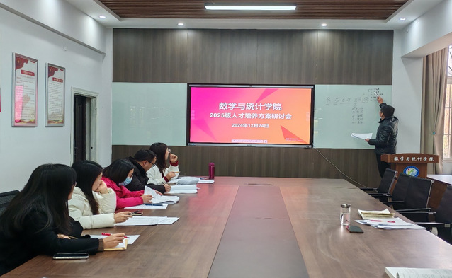 本网讯(通讯员 杨佩)为优化课程体系,推动学院教学建设迈向新台阶,12月24日,数学与统计学院在十号楼二楼研究中心开展2025版人才培养方案研讨会。数学与统计学院副院长吴新林,各系主任和专业负责人出席本次会议。