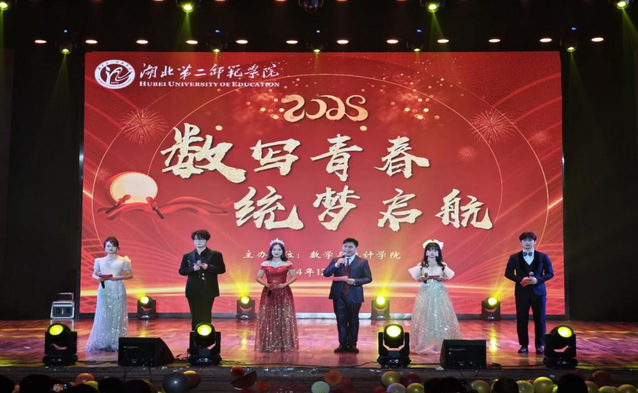 本网讯(通讯员 陈俊涛)12月30日,数学与统计学院2025年“数写青春,统梦启航”迎新春文艺晚会暨2024年“荣耀数统之星”颁奖典礼在大礼堂顺利举办。校党委副书记胡兴,师友学友联系部门党政办公室主任王青,师友学友联系部门教学质量监测与评估中心主任邓樱花,学工部部长文敏,校团委书记刘锐,党政办公室副主任欧阳杰,教学质量监测与评估中心副主任张楠,学工部副部长刘兴,数学与统计学院党委书记林志红,院长肖海燕,副书记严国涛,副院长吴新林、胡颖,院长助理张宇以及学院专任教师、班主任、学院三办全体成员,六大校级学组织,兄弟院系代表出席本次活动。
