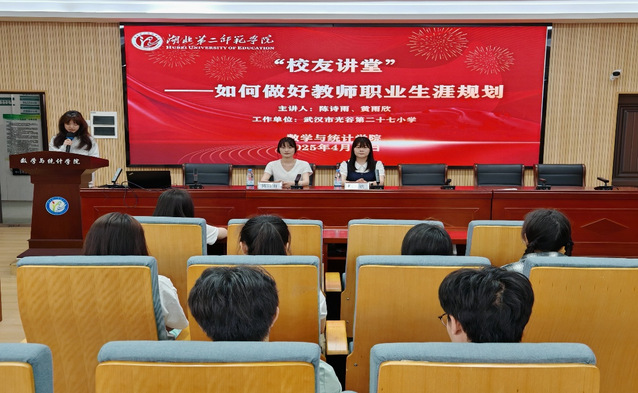 本网讯(通讯员 胡旭)为助力同学们明晰教师职业发展方向,4月20日,数学与统计学院在十号楼会议室和“一站式”学生社区开展第五期“校友讲堂”——如何做好教师职业生涯规划活动。2022级学生代表、2023届毕业生黄雨欣、陈诗雨参加此次活动。