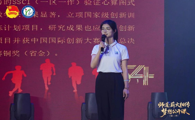本网讯(通讯员 夏聪)5月8日,湖北第二师范学院在大礼堂举行“师道・薪火相传”五•四梦想公开课。活动过程中,数学与统计学院2021级数学与应用数学2班优师计划学生代表陈树芳讲述梦想公开课——《数学课堂的三束光:我的教师梦》,她结合自身经历,激励同学们积极投身教育事业,追逐教育梦想。