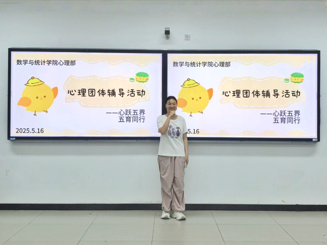 本网讯(通讯员 杨咏欣)为缓解同学们的学习压力,关注同学们的心理健康状况,5月16日,数学与统计学院在BY101教室开展心理团体辅导活动。本次活动由数学与统计学院心理部干事成骋主持,心理部部分成员以及2023级、2024级部分同学参与。