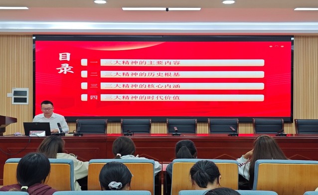 开班仪式结束后,团委负责人田颖为同学们讲授团校第一课。他解读了三大精神的主要内容、基本根基、核心内涵、时代价值。同时,他告诫同学们要深度学习三大精神,严于律己,践行法治理念,共筑校园法治新生态。