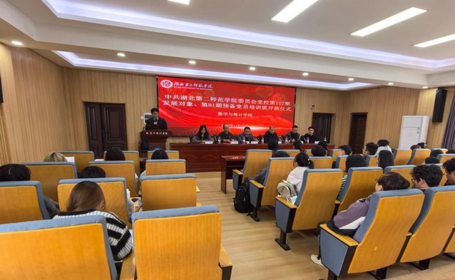 本网讯(通讯员 何萌)为深入贯彻落实新时代党的建设总要求,切实加强党员发展与教育工作,11月11日,数学与统计学院于十号楼二楼会议室举行中共湖北第二师范学院委员会党校第112期发展对象、第81期预备党员培训班开班仪式。校团委书记刘锐,数学与统计学院党委书记林志红,党委副书记严国涛,全体辅导员及预备党员培训班全体学员参加仪式。