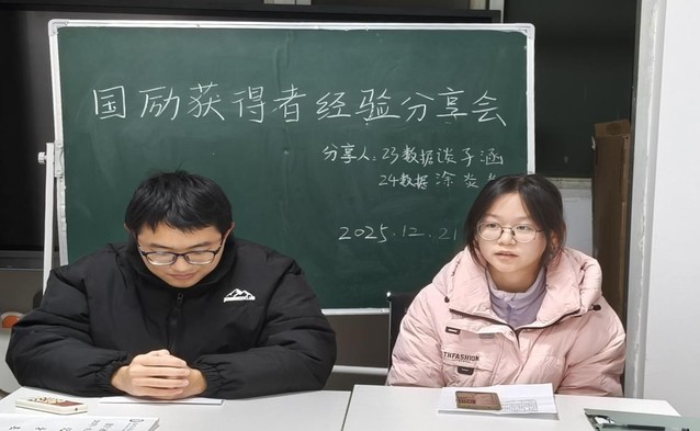 分享会上,谈子涵结合自身学习经历,围绕数据专业课程的学习技巧、专业竞赛的备赛思路展开分享,讲解如何将理论知识与实践应用相结合的方法。涂炎炎则聚焦数据学科的学习规划,从基础学科积累、专业软件操作、自主学习资源利用等方面,为同学们梳理学习路径,并结合自身遇到的问题与解决经验,给出针对性建议。两位主讲人通过具体案例分享成长心得,为在场同学提供了具参考价值的学习思路与方向。