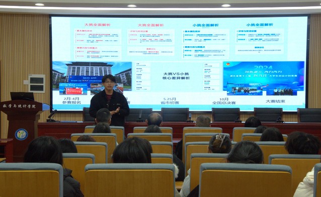 本网讯(通讯员 胡倩)为解读赛事规则、分享备赛经验,引导同学们聚焦需求积极备赛参赛,12月23日,数学与统计学院于十号楼会议室开展第十五届“挑战杯”大学生创业计划竞赛宣讲会。数学与统计学院党委副书记严国涛,副院长吴新林,辅导员徐静雨、田颖、占劢、张博影,校团委科创部童宜江、代梦瑶,2024级、2025级各班部分学生参会。