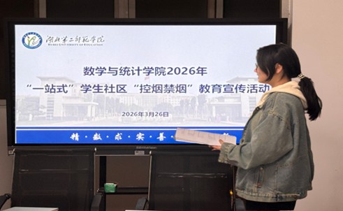 本网讯(通讯员吴紫琳)为增强同学们的健康意识,营造无烟、文明、健康的校园环境,3月26日,数学与统计学院在“一站式”学生社区开展“珍爱生命 远离烟草”教育宣传活动。本次活动由数学与统计学院学生会副主席田园、公共权益部部员范紫鑫与肖蕾组织,各班代表参与。