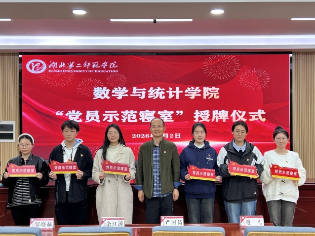 本网讯(通讯员陈至贤)为激励广大学生主动打造整洁、温馨、奋进的宿舍环境,共同构筑文明家园。4月2日,数学与统计学院在“一站式”学生社区外延阵地10202开展2026年度“党员示范寝室”授牌仪式。数学与统计学院党委书记林志红,党委副书记严国涛,学工办主任余江涛,全体辅导员,以及数理研习社成员、数统学院党员代表参加本次活动。