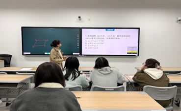 活动现场,七位参赛选手依次上台,围绕初中数学课程内容进行模拟授课,主题涵盖平行四边形的判定、正数和负数、二元一次方程组、勾股定理及其应用、平行线的判定方法、因式分解、方差等多个知识点。大家精心设计教学环节,通过板书书写、互动提问等方式展现教学思路,现场氛围专注有序,充分展现了我院师范生的专业素养与教学潜力。评委们认真聆听每一位选手的授课,结合教学设计、课堂表达、板书规范等方面进行现场点评。